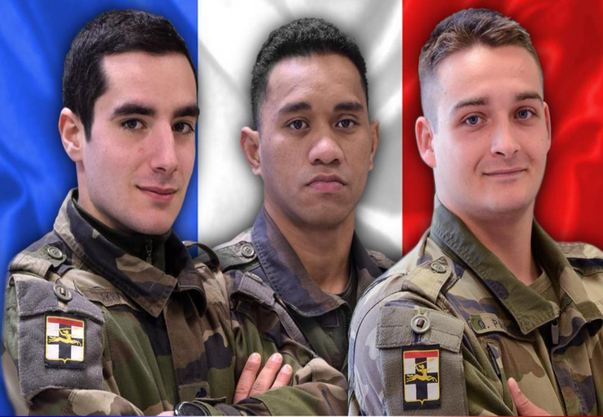 Trois de nos jeunes et valeureux soldats on été tués par une mine.