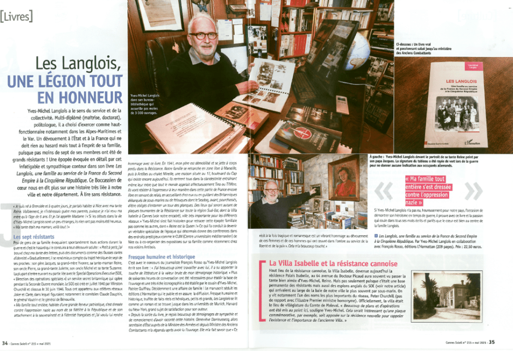 La saga de la famille Langlois Salomon est complétée par une riche iconographie, ainsi que par de nombreux facsimilé de documents officiels tant français que britanniques. Une telle étude constitue assurément une contribution de grande valeur à l’histoire de ces Français qui entrèrent en résistance au sein d’un service spécial allié, celui de la Grande Bretagne. Grâce à ce livre, leur combat héroïque sort enfin de l’oubli.