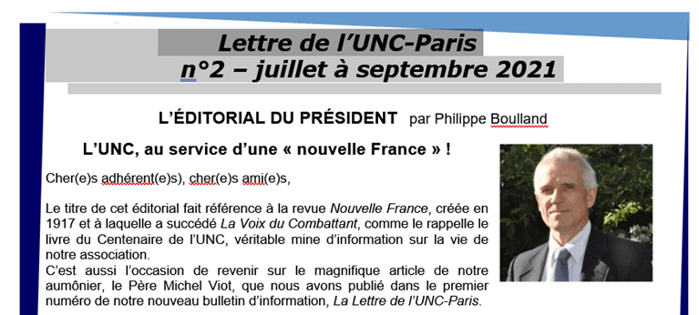 Nous remercions l’UNC de Paris pour leur confiance et les félicitions pour toutes leurs activités.
