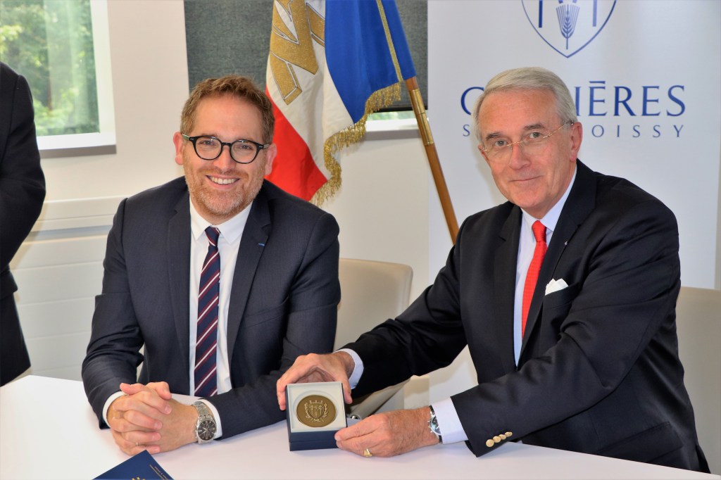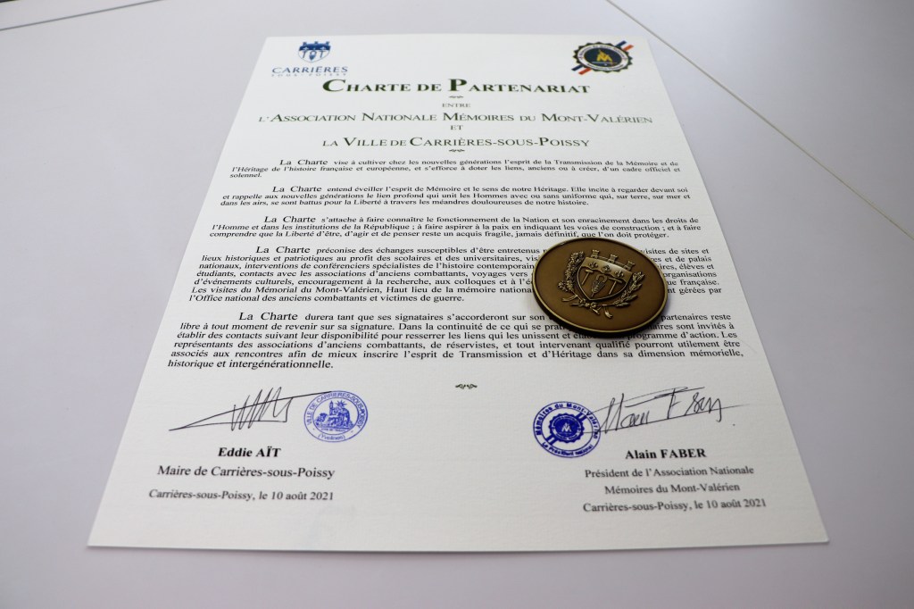 Messieurs Eddie AÏT Maire de Carrières-sous-Poissy et Alain FABER Président des Mémoires du Mont-Valérien