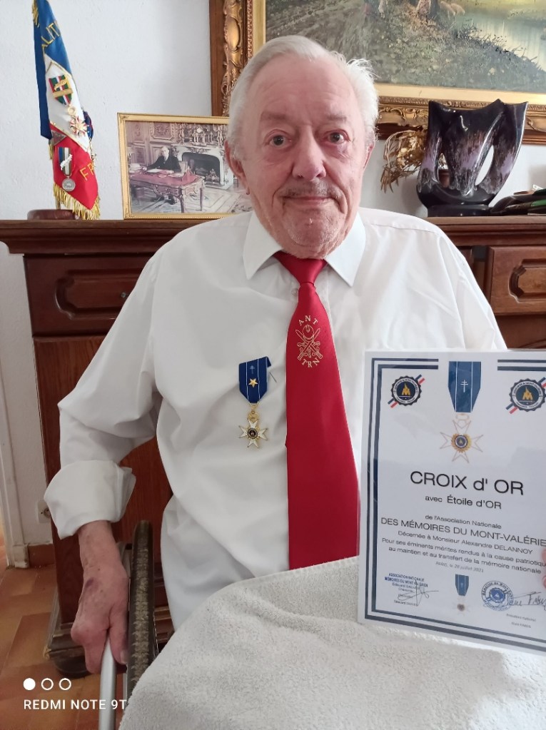 LA « CROIX D’OR DU MÉRITE AVEC ÉTOILE D’OR DES MÉMOIRES DU MONT-VALÉRIEN » LUI FUT ATTRIBUÉE LE 28 JUILLET 2021.