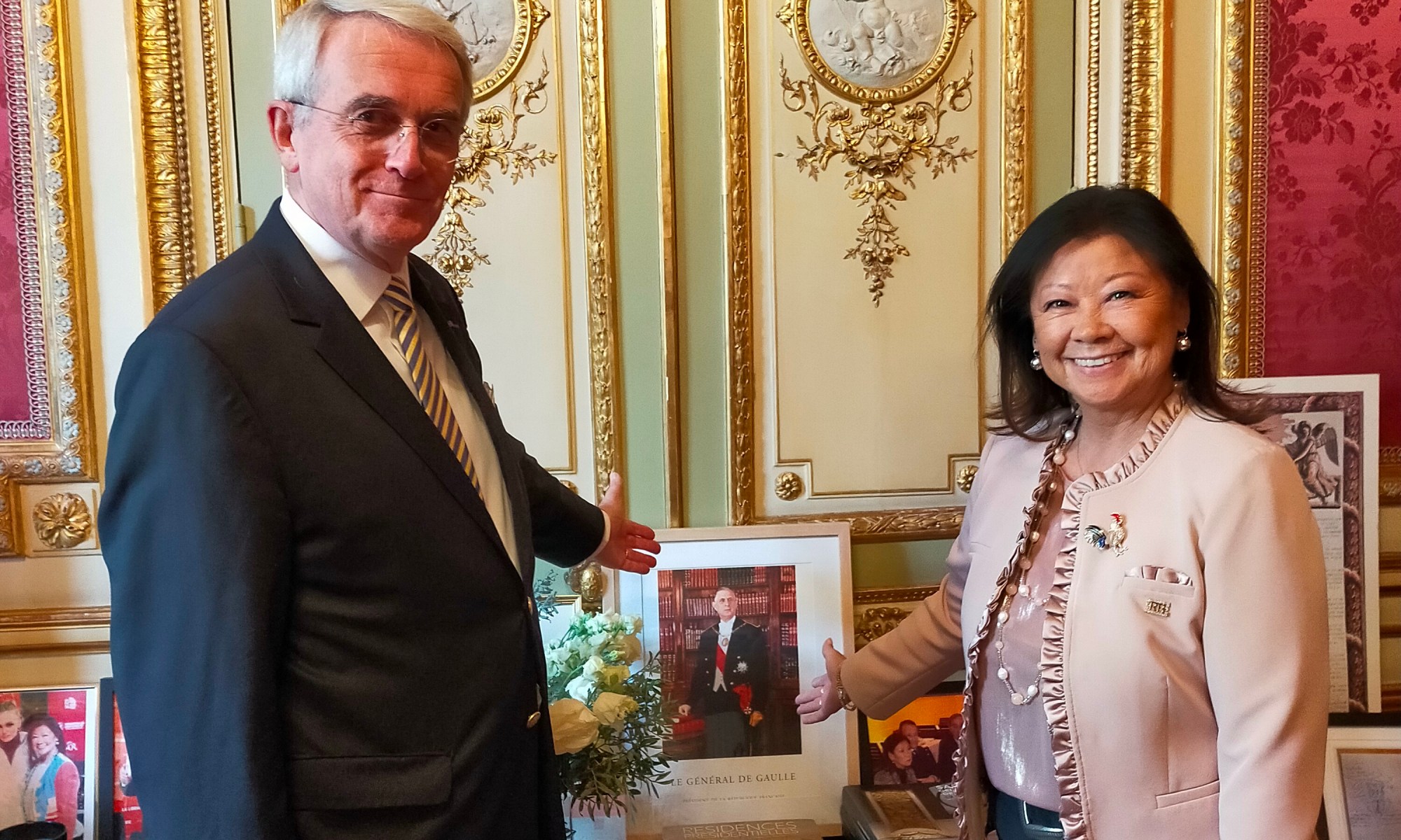 Le président Alain FABER remercie chaleureusement madame la Maire de l’accueil qui lui fut réservé. A la fin de l’entretien celui-ci lui remit en cadeau d’amitié « l’ÉCRIN DES DAMES » qui contient l’insigne de revers de notre association ainsi qu’un bijou fantaisie représentant un coq bleu, blanc, rouge que Madame d’HAUTESSERES porta immédiatement.