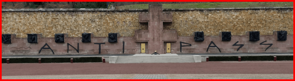 Lorsque le lundi 13 décembre fut découvert sur le mur de la façade du mémorial de la France combattante au Mont-Valérien, (érigée en l’hommage de tous les morts de la guerre 1939-1945 et inauguré par le général de Gaulle le 18 juin 1960) l’inscription : « anti pass » avec les deux « s » dessinés pour ressembler au sigle « SS », mon cœur fut rempli de tristesse et de douleur.