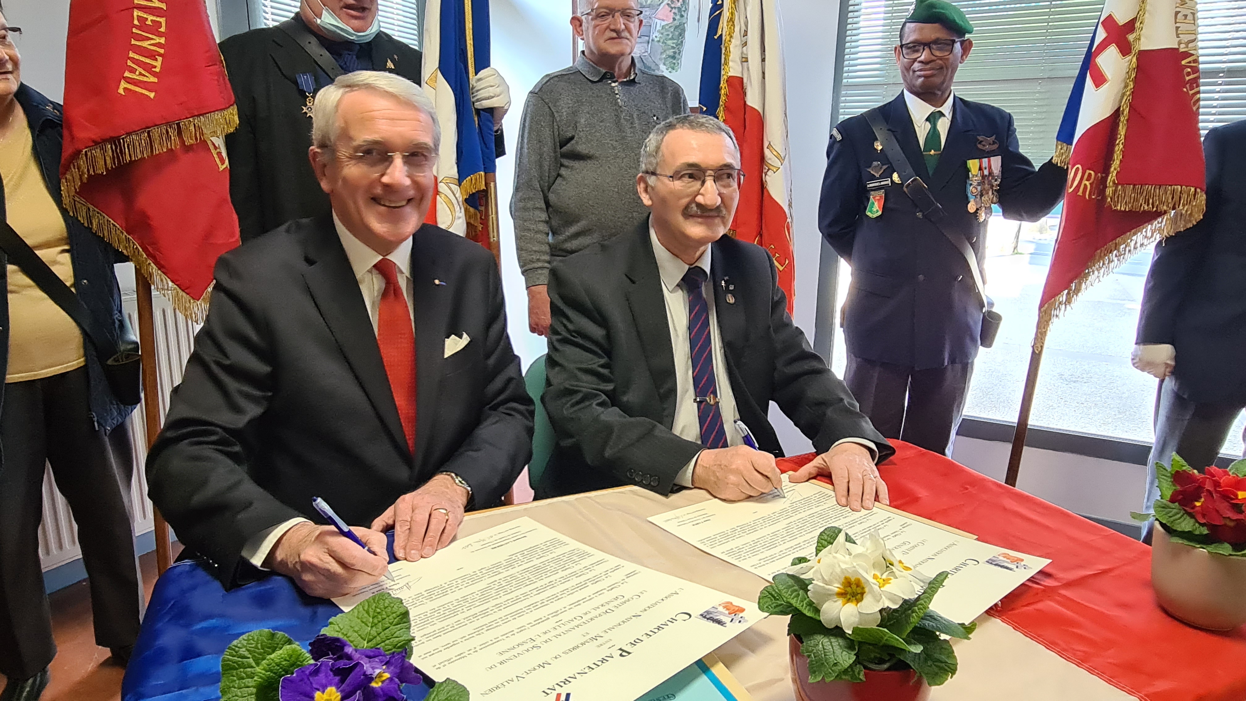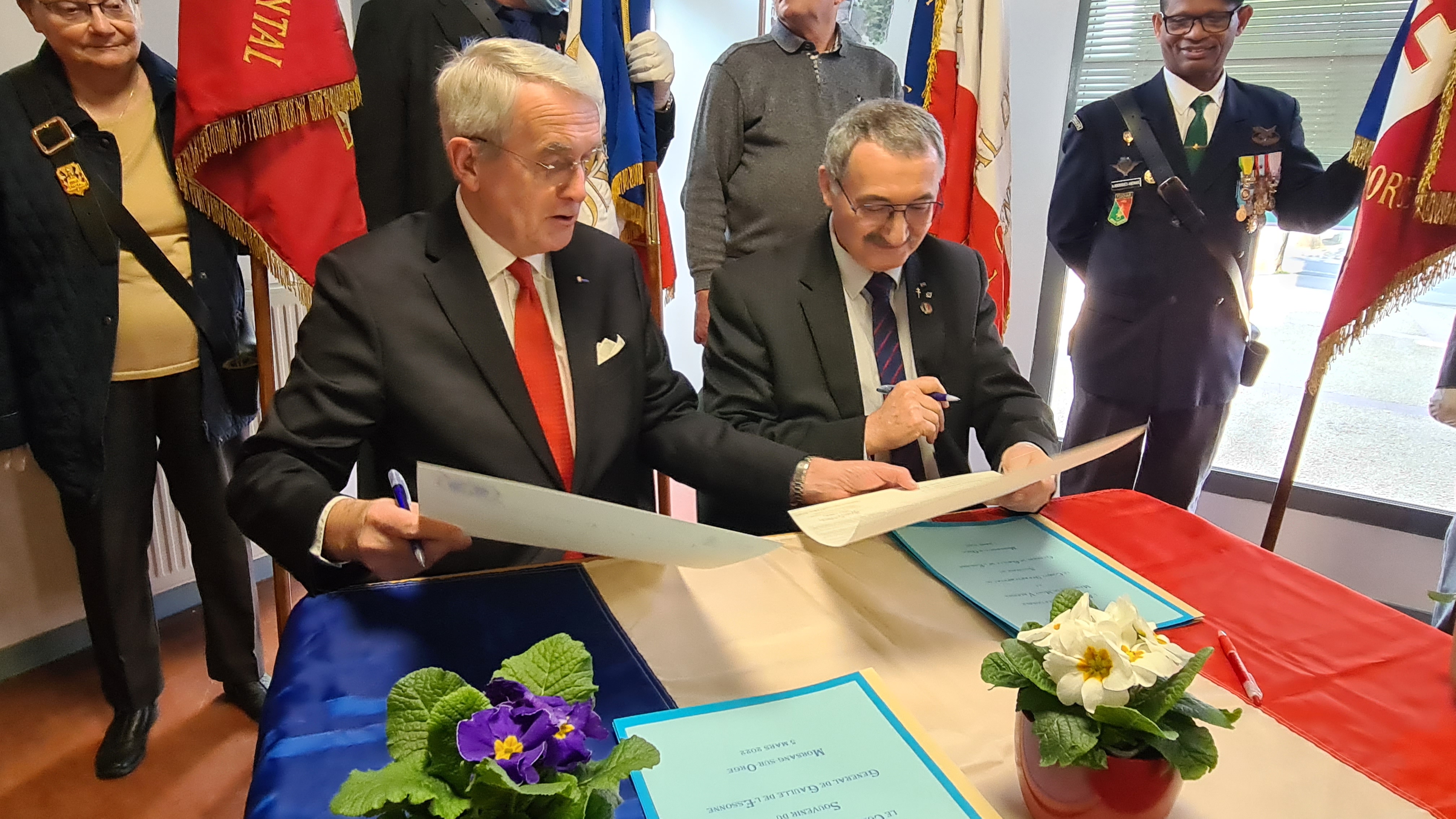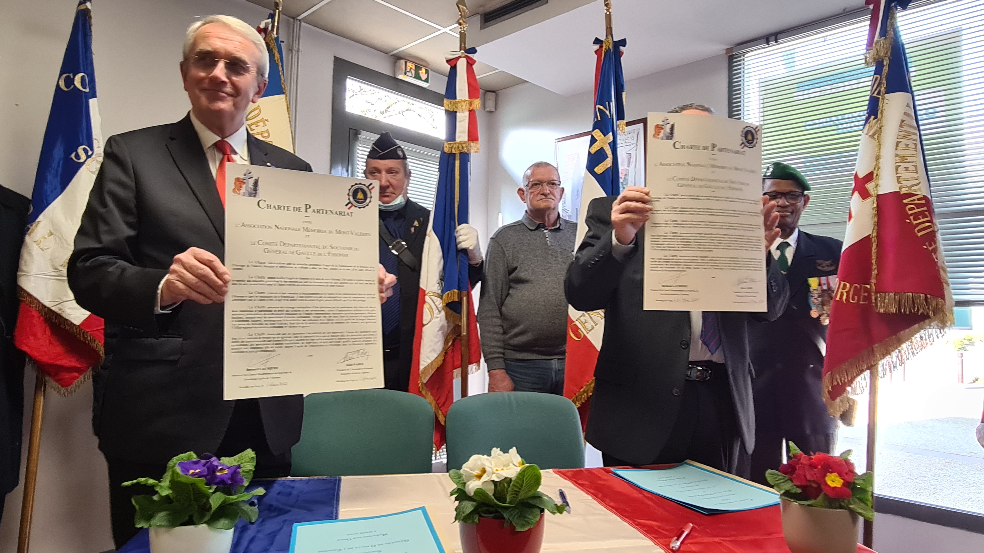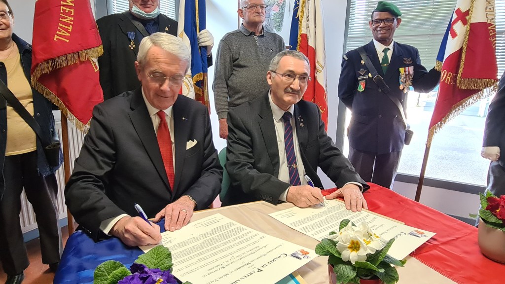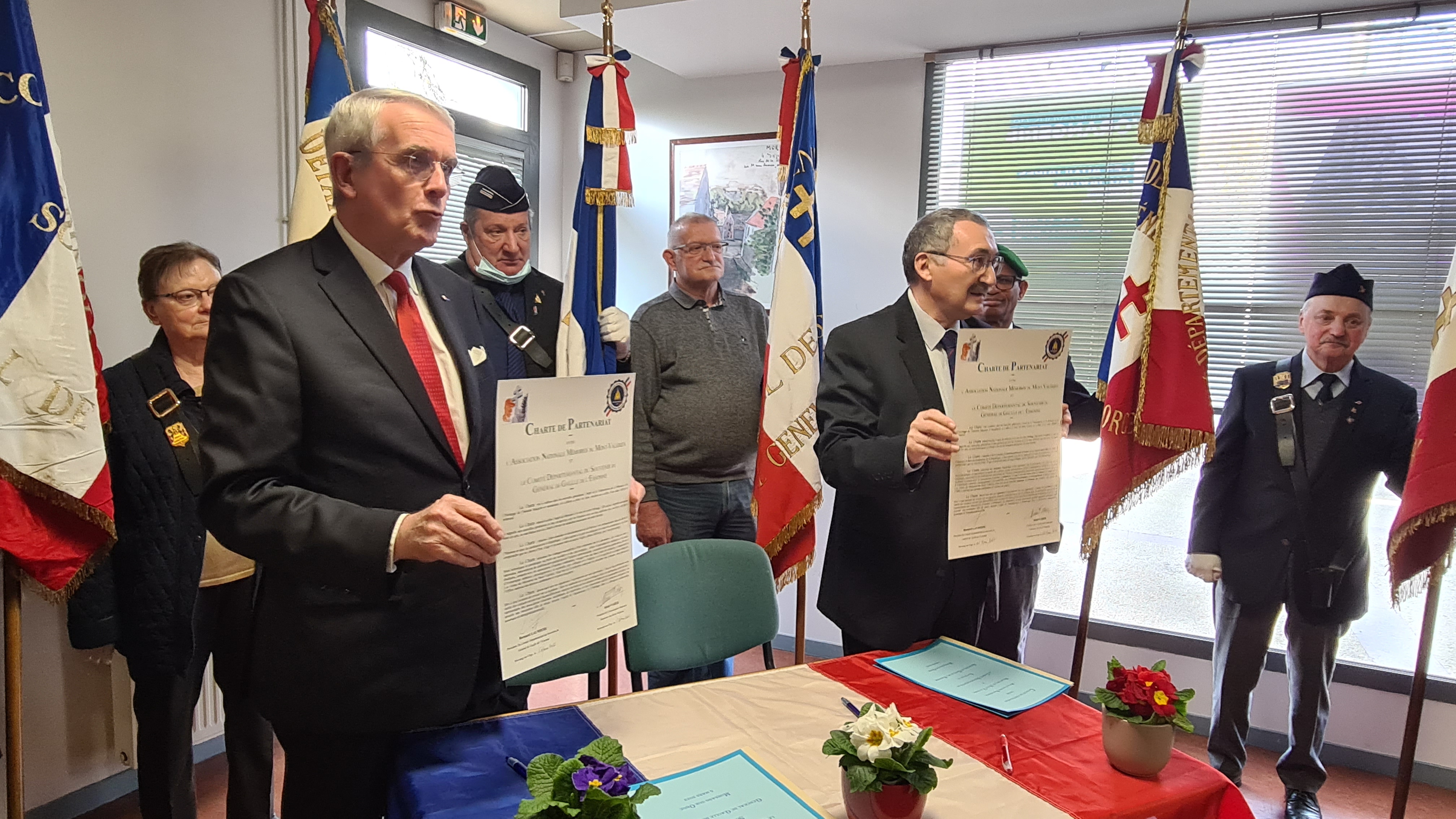 Le samedi 05 mars 2022 en début d’après midi à Morsang sur Orge une quarantaine de personnes étaient réunies sous la Présidence de Monsieur Bernard LAUMIERE du Comité du Souvenir du Général de Gaulle de l’Essonne, pour assister et soutenir la signature de la « Charte de Partenariat » avec l’Association Nationale Mémoires du Mont-Valérien. Cette charte est le premier pas vers la participation comme membre fondateur du Rassemblement des Mémoires Européennes de l’Euro-Fédération pour la Paix, qui sera singée très officiellement le 28 mars prochain sous le Haut Patronage de son Excellence Monsieur l’ambassadeur de Belgique en France.