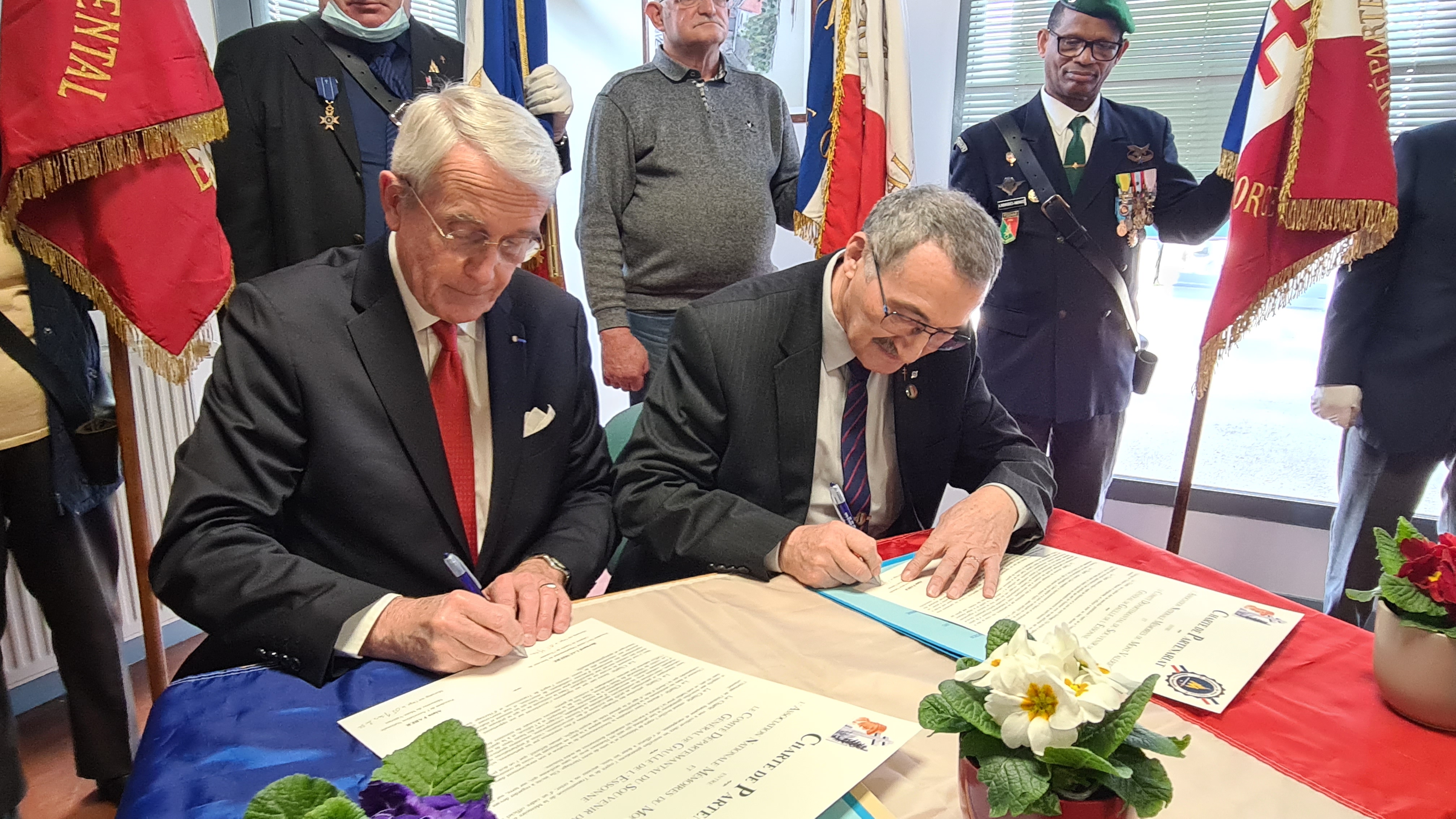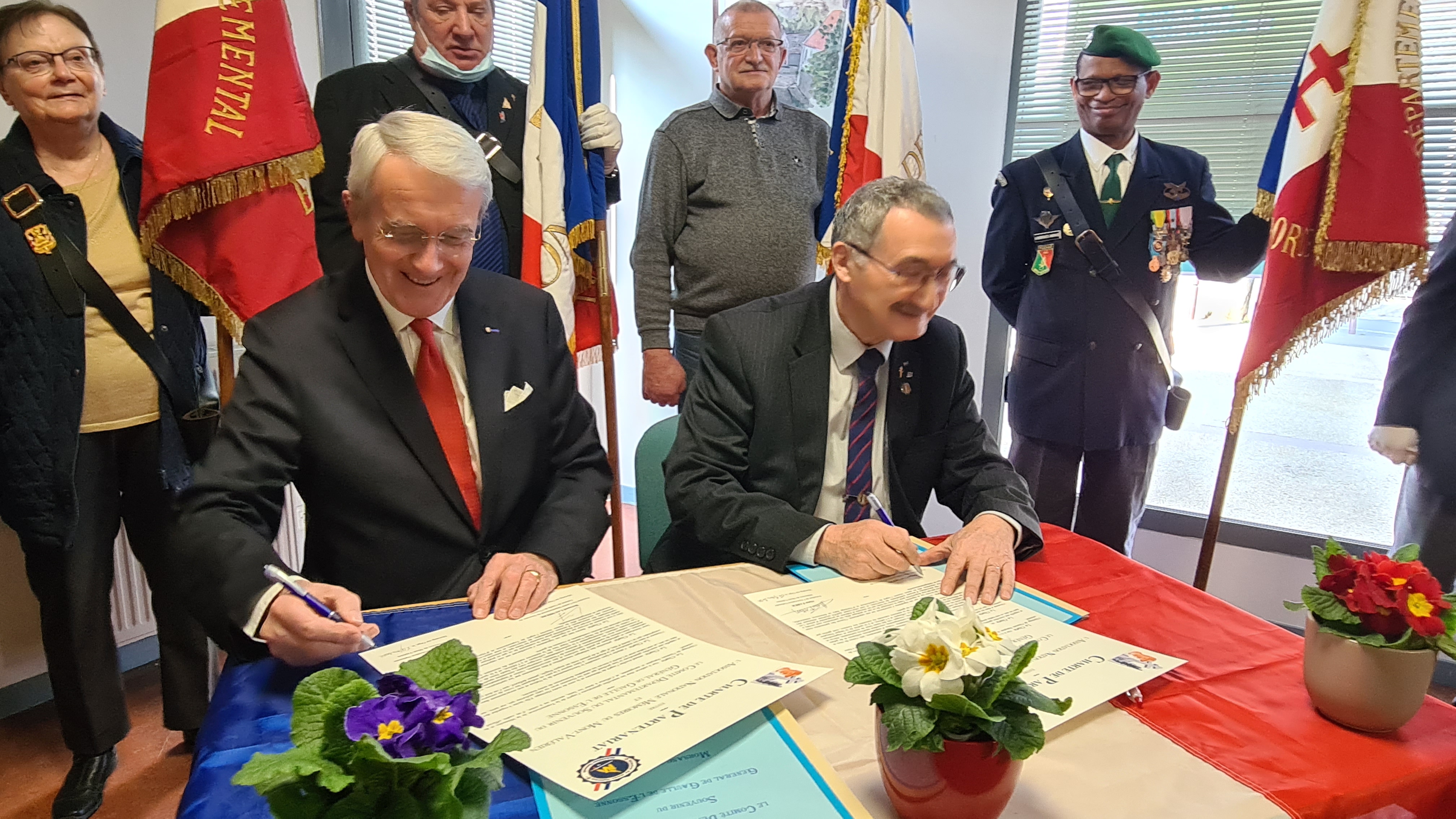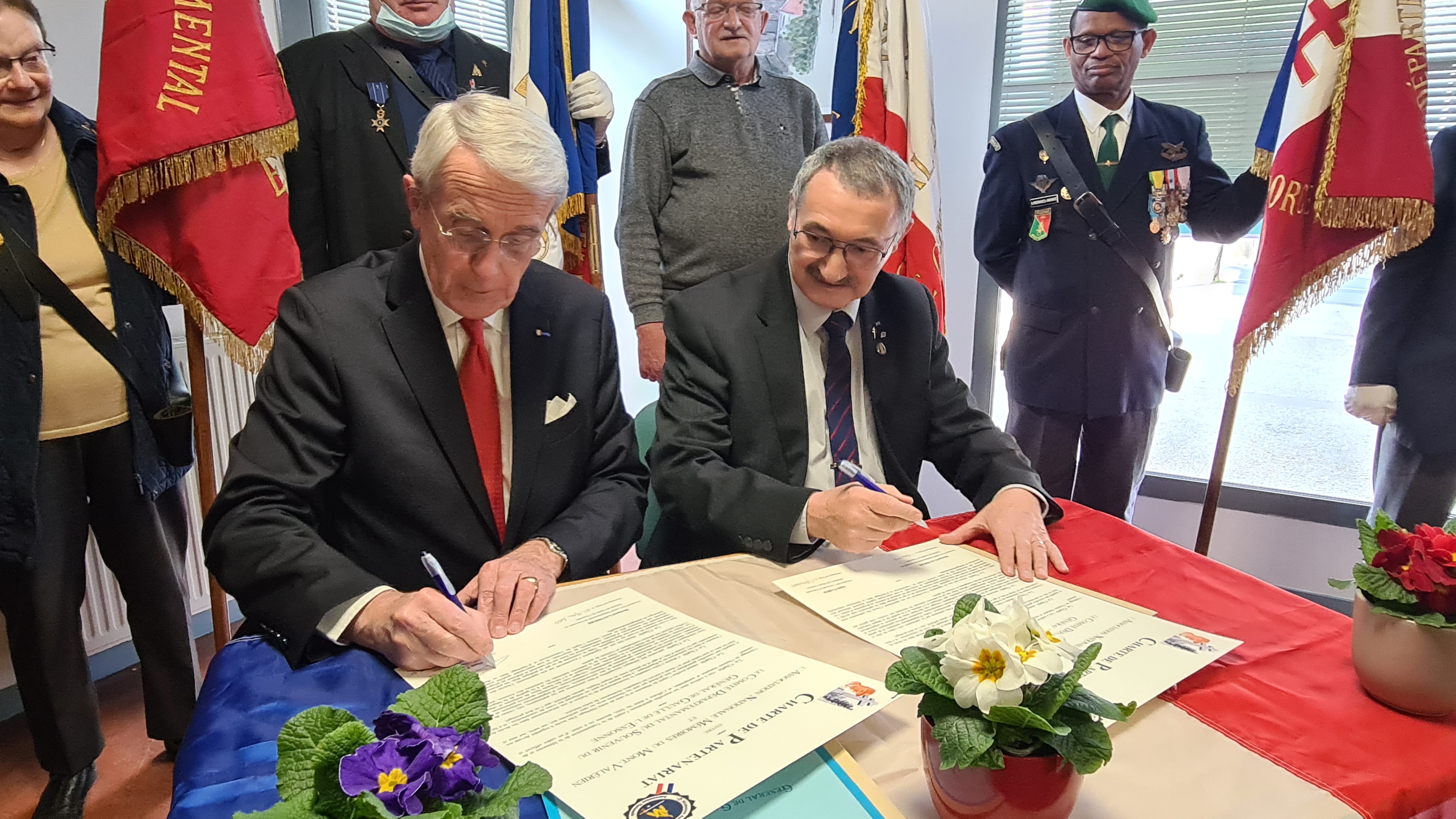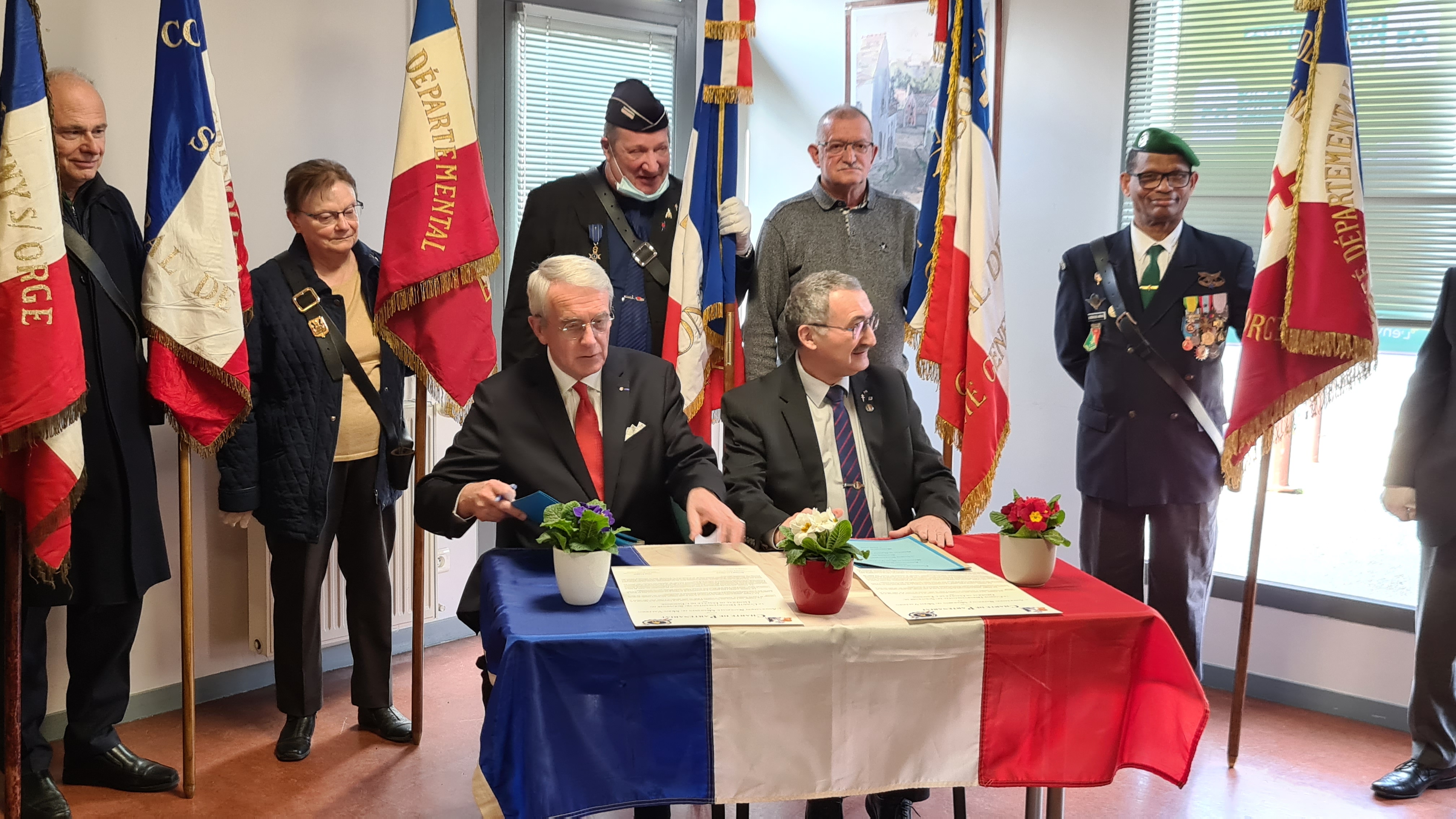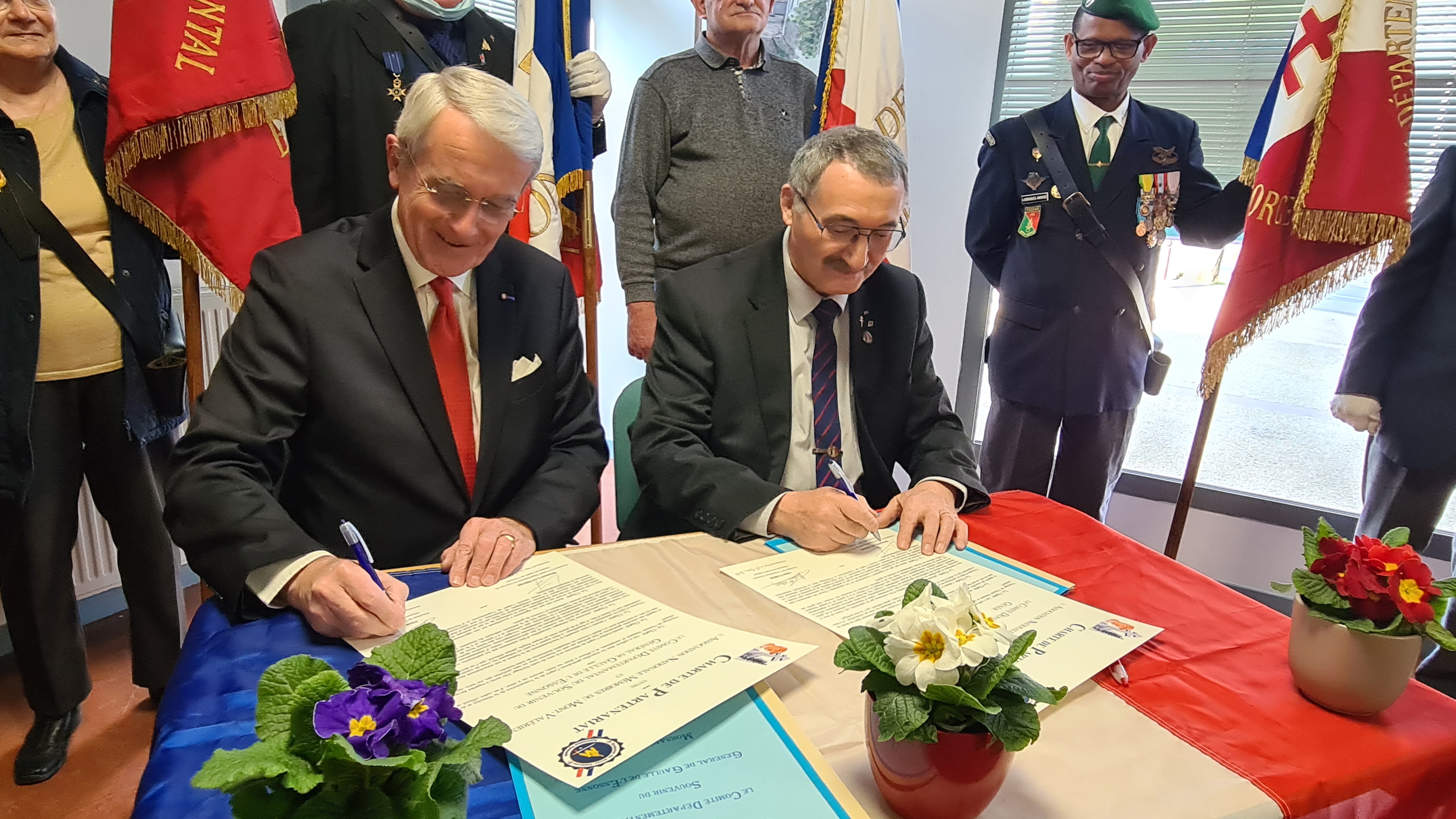Le samedi 05 mars 2022 en début d’après midi à Morsang sur Orge une quarantaine de personnes étaient réunies sous la Présidence de Monsieur Bernard LAUMIERE du Comité du Souvenir du Général de Gaulle de l’Essonne, pour assister et soutenir la signature de la « Charte de Partenariat » avec l’Association Nationale Mémoires du Mont-Valérien. Cette charte est le premier pas vers la participation comme membre fondateur du Rassemblement des Mémoires Européennes de l’Euro-Fédération pour la Paix, qui sera singée très officiellement le 28 mars prochain sous le Haut Patronage de son Excellence Monsieur l’ambassadeur de Belgique en France.