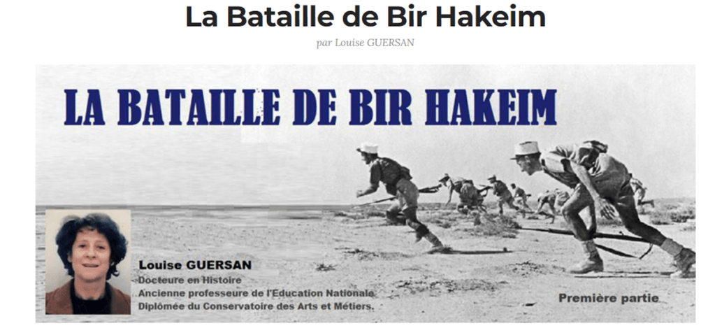 Cliquez sur l’ image ci-dessous pour de plus amples informations sur la bataille de Bir Hakein par le Docteur en Histoire Madame Louise GUERSAN