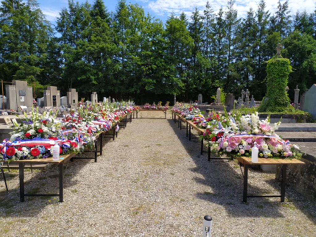 Après des discours officiels plus poignants les uns que les autres, le cortège de plusieurs centaines de personnes s est rendu au cimetière pour y déposer quelques dizaines de gerbes afin de rendre un vibrant hommage aux victimes de cette barbarie nazie.