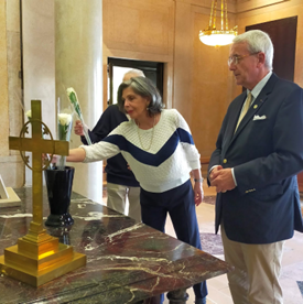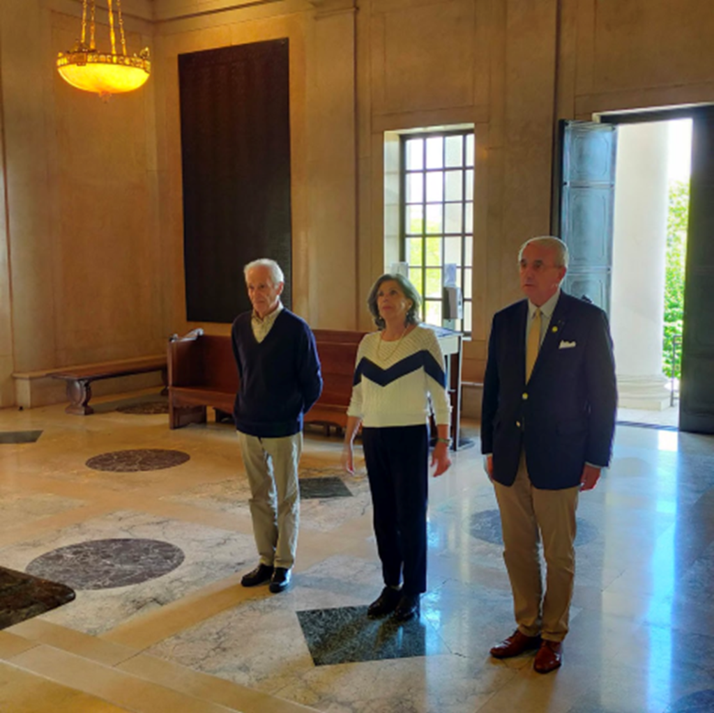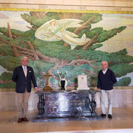 Aux noms des Mémoires du Mont-Valérien, de ses inscrits et contributeurs, et comme tous les ans depuis ce jour maudit, le président accompagné de Madame Béatrix LE BIGOT et de Monsieur Patrick OURCEYRE Secrétaire général Exécutif de notre association déposèrent trois fleurs symboliques à la chapelle du cimetière américain de la ville de Suresnes.