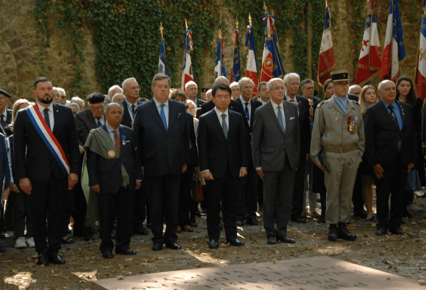 Etaient présents son excellence Monsieur Yoo Dae-jong ambassadeur de Corée du sud en France, son excellence Monsieur François de Kerchove d’Exaerde ambassadeur de Belgique en France, Monsieur Jean-Pierre RAZAFY-ANDRIAMIHAINGO ancien ambassadeur de Madagascar en France, Monsieur Jean Baptiste Romain Directeur des Hauts lieux de Mémoire de l’Office National des Anciens Combattants et Victimes Guerre, Monsieur Iacovelli Sénateur des Hauts de Seine, Monsieur le colonel TOURNY Délégué Militaire Départemental, Chef de corps du 8éme Régiment de transmission, Monsieur Roger Quintard secrétaire général de l’Association Nationale des Anciens et Amis des Forces Françaises de l’ONU et du Bataillon et régiment de Corée – 156è RI