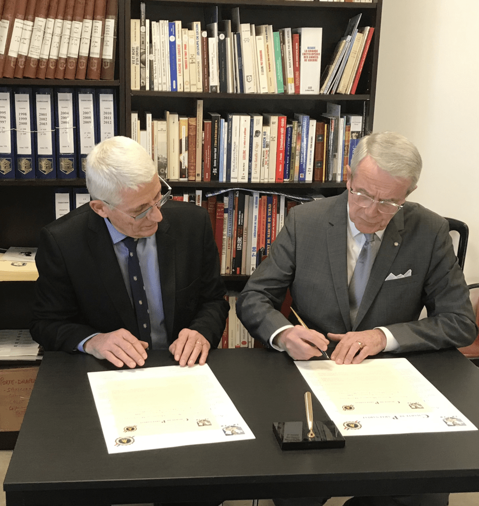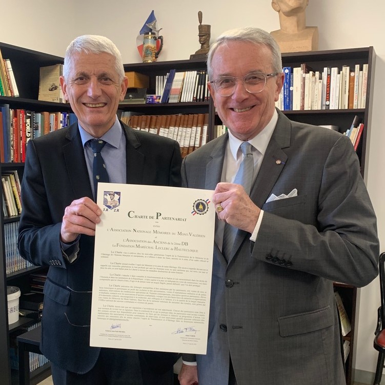 En la présence de notre secrétaire général exécutif Patrick Ourceyre, notre Président Alain Faber a scellé notre amitié avec le général Jean-Paul Michel Président de l’association des anciens de la 2émDB et Président de la Fondation Maréchal Leclerc de Hautecloque en signant la » Charte de partenariat » entre notre association nationale et la Fondation.