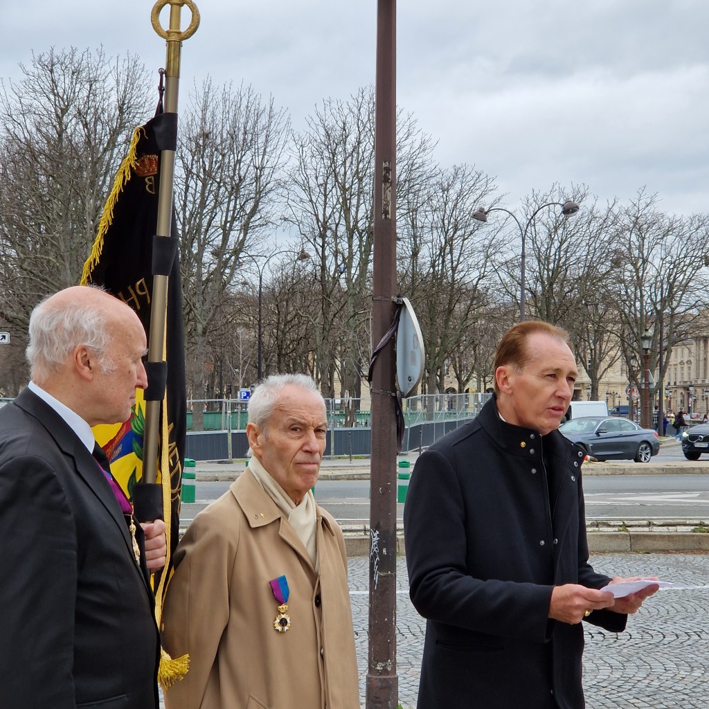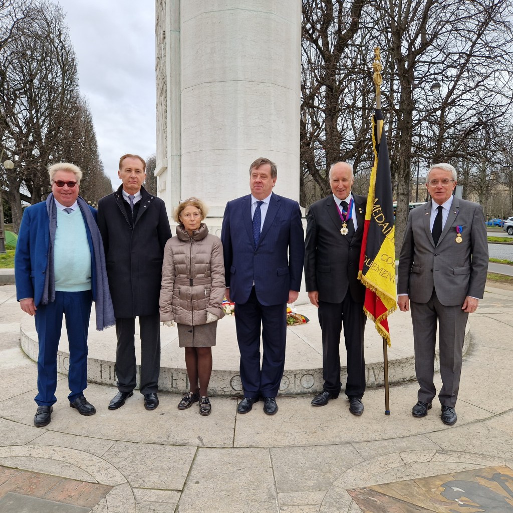 Le 17 février, à l’invitation de Messieurs Claude Bartos-Monbredau Administrateur délégué de Paris-IdF de la Société Royale Philanthropique des Médaillés et Décorés de BELGIQUE du Tournaisis et de Monsieur Jean-Philippe Secordel-Martin, président de l’Association Française des Amis du Royaume de BELGIQUE, notre président nationale Alain Faber et notre secrétaire général exécutif Patrick Ourceyre étaient présents au pied du monument élevé en mémoire du « roi soldat », sur le Cours La Reine à Paris VIII. La Société Royale Philanthropique des Médaillés et Décorés de Belgique était présente avec son drapeau.