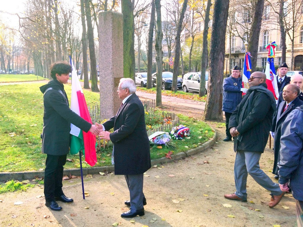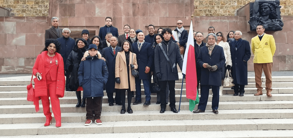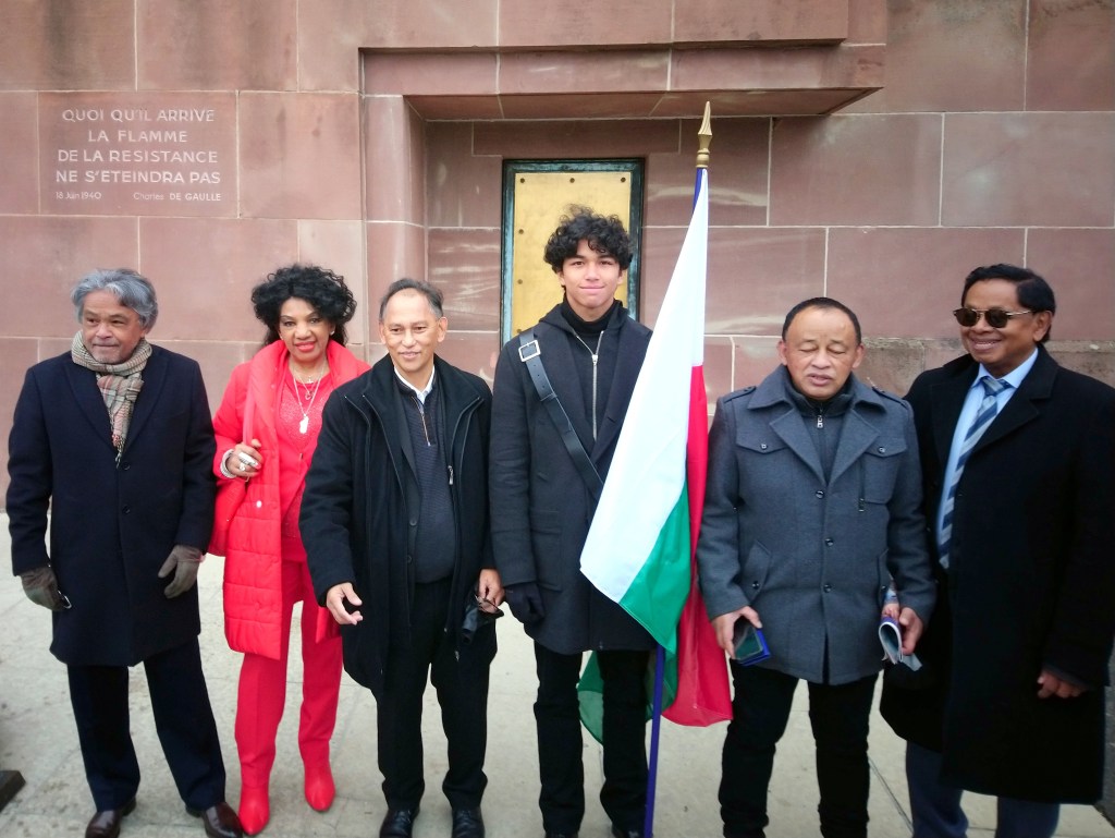 Dépôt de gerbes devant la stèle de la fraternité Franco Malgache en la présence de son excellence Mr Olivier Hugues Rija Rajohnson Ambassadeur de Madagascar en France et de nombreuses personnalités civiles ainsi que des porte-drapeaux. En suivant nous avons pu visiter une exposition de peintres malgaches à la résidence de l’ambassadeur.