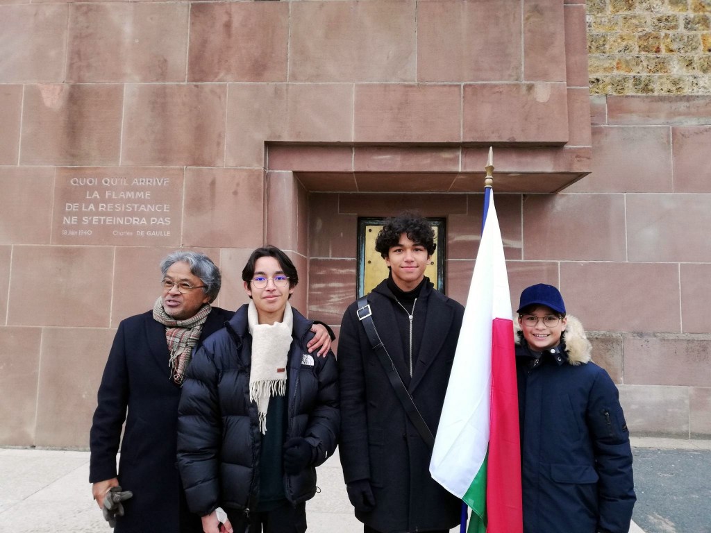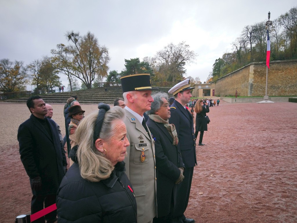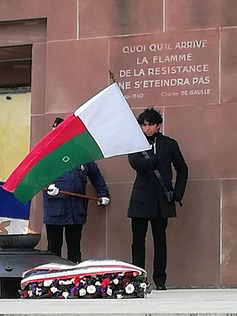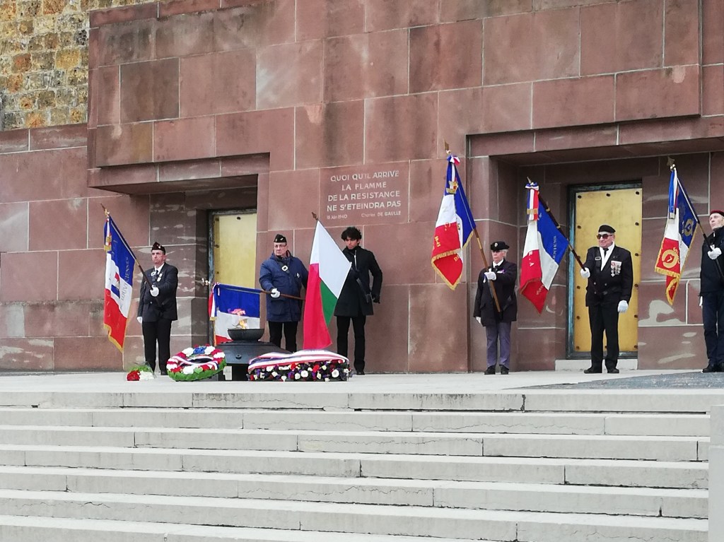 Mémorial de la France Combattante au Mont-Valérien : en présence des porte-drapeaux, d’une section de préparation militaire marine Jean Bonal de la ville de Compiègne, de nombreuses personnalités civils et militaires ont participé à un nouvel hommage en l’honneur des tirailleurs malgaches. Après un premier dépôt de gerbe aux couleurs du drapeau malgache par la famille malgache de M. Olivier Sicard, Mme Valérie Solaine Maire adjointe de la Marie de Puteaux est venue à son tour déposer une très belle gerbe et pour finir M. Alain Faber déposa celle de l’association nationale Mémoires du Mont Valérien.