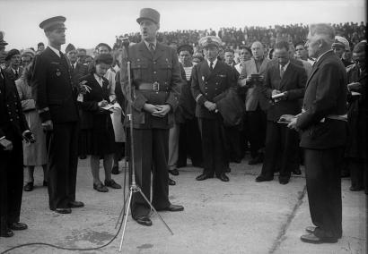Remise de la Croix de la Libération à l’Ile de Sein par le général de Gaulle en août 1946