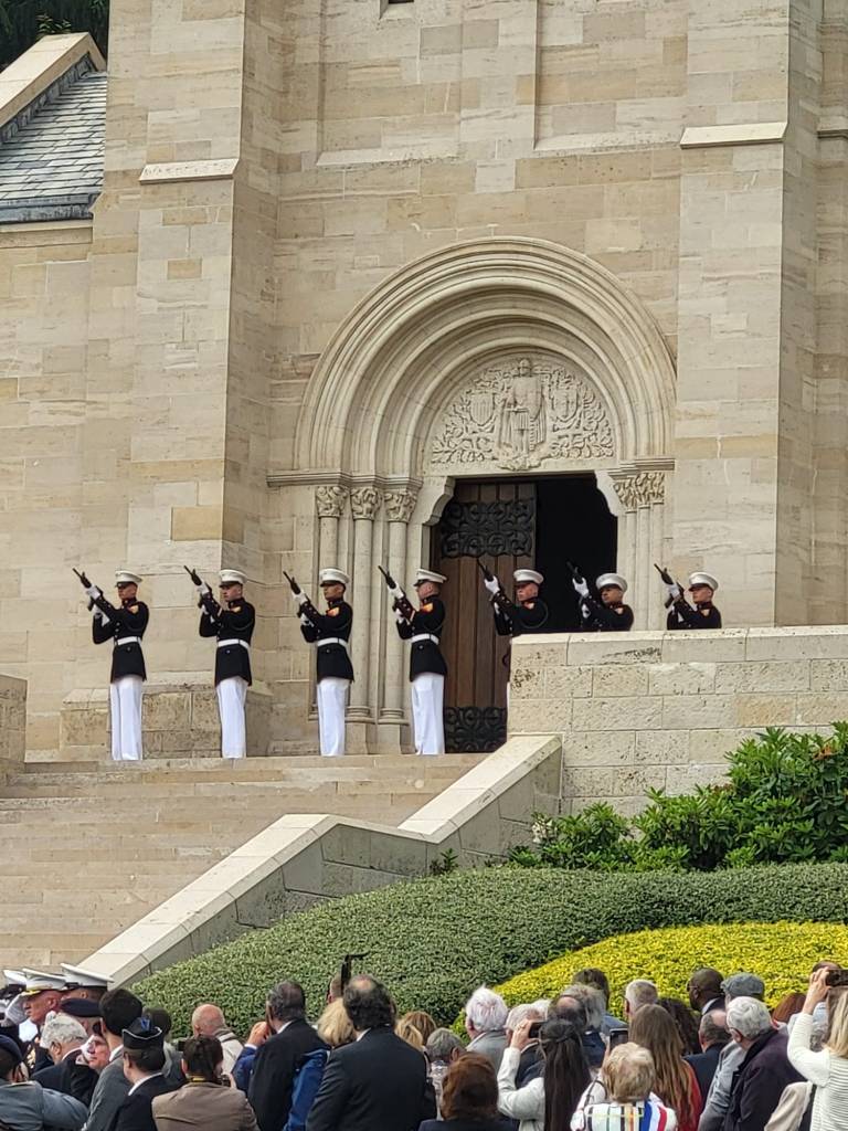 Cette année, la présence des US Marines à l’American Battle Monuments Commission de l’Aisne lui donna un éclat particulier. J’ai pu converser un long moment avec le nouveau commandant du Corps des Marines, le Général Eric M. Smith, qui fit un discours au milieu de ses Hommes lors de sa prise de commandement sur le lieu le plus symbolique des USMC.