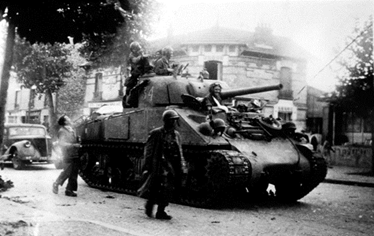 Le 24 août : la 9e compagnie du régiment de marche du Tchad forte de 15 véhicules blindés précédés par 3 chars du 501e RCC va se poster en renfort des FFI devant l’Hôtel de Ville.