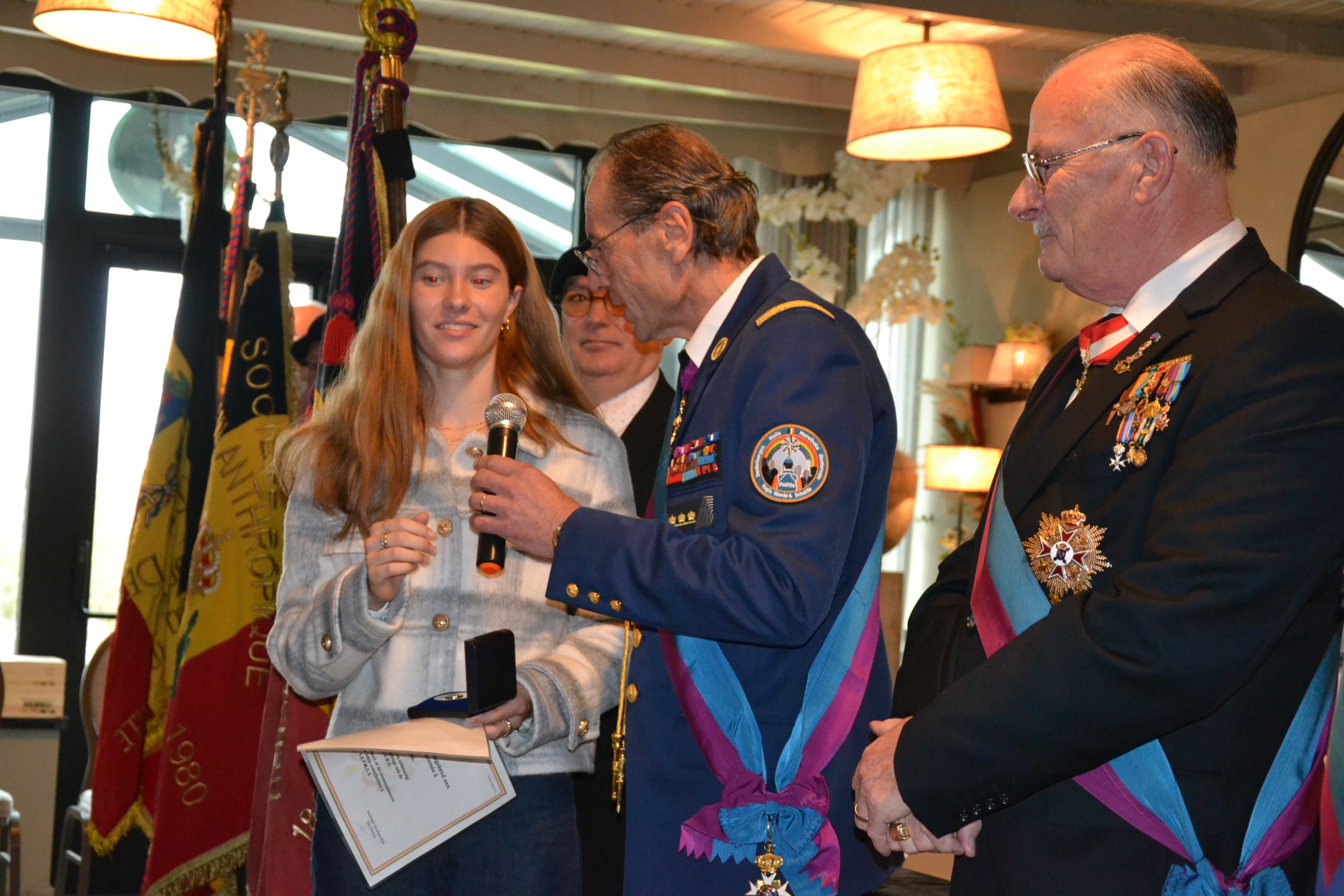 Lors de l’Assemblée Générale de nos amis de la Société Royale Philanthropique des Médaillés et Décorés de Belgique, le Président Alain Faber eu le plaisir de pouvoir remettre la médaille de la reconnaissance à une jeune australienne présente, Mademoiselle Siara O’Callaghan, venue en Belgique pour perfectionner son français aux côtés de son Grand-Père et prendre également soin d’une tombe d’un soldat australien en Belgique.