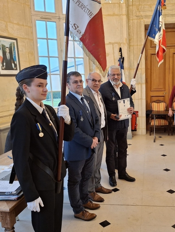 En l’absence de notre délégué régional Monsieur Stéphane Cérabino empêché par une intervention urgente, la remise des diplômes, médaille, et croix du mérite fut réalisée sous la présidence de Monsieur Jean-Paul ROCOURT (Croix d’argent du Mérite MMV) Président fondateur de l’association patriotique » Mémoire et Avenir Citoyen » en présence de Monsieur Guy LAFOREST vice président de l’association et Maire de Villers-Sous-Saint-Leu.