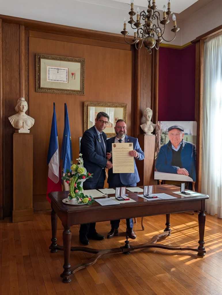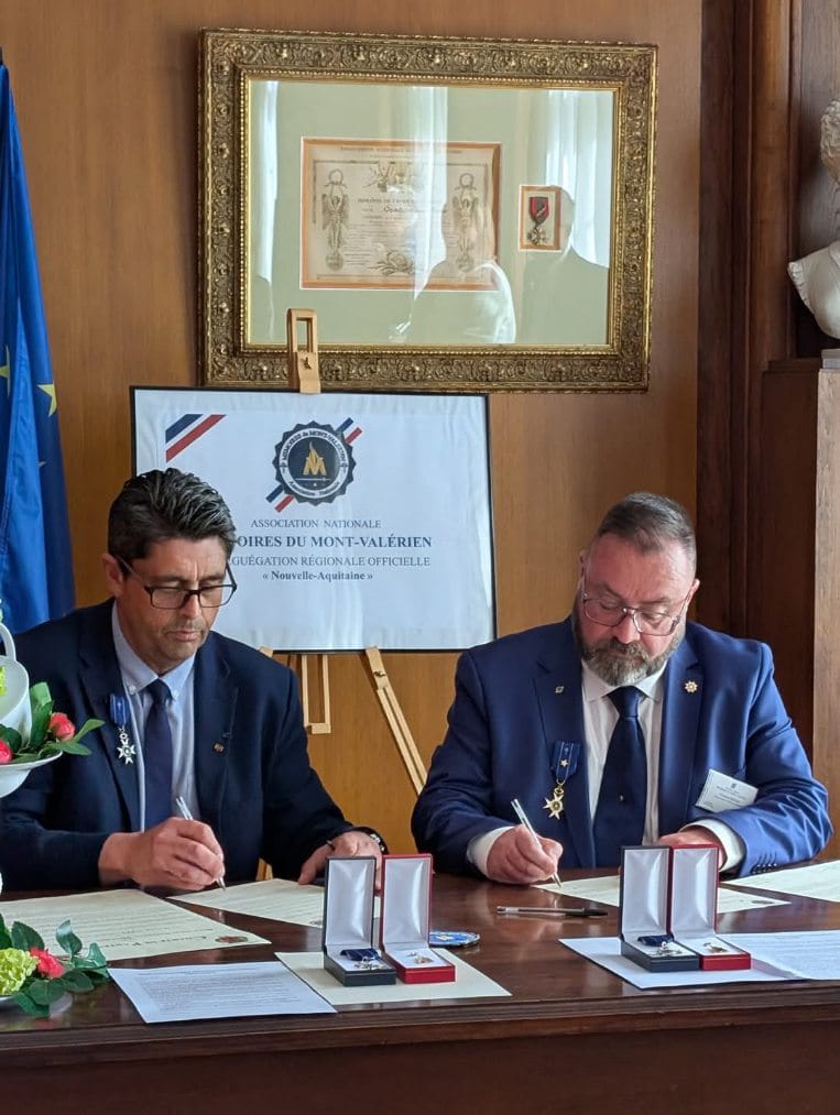 Le président Alain FABER empêché, avait à titre très exceptionnel donner une délégation de signature à Monsieur Christophe SENCIER délégué régional des Mémoires du Mont-Valérien pour approuver provisoirement et en son nom cette charte signée par Monsieur le Maire Philippe LACROIX. Cette signature fut suivie de la remise de décorations aux récipiendaires.