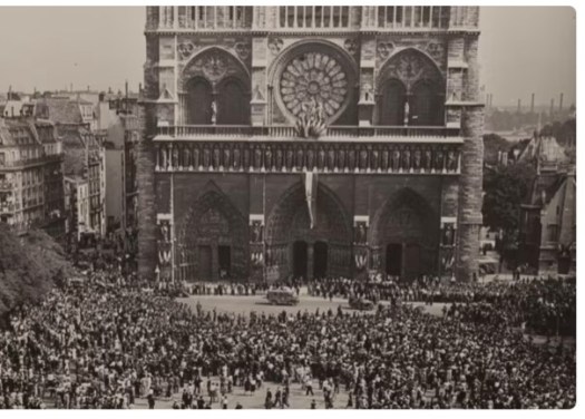 De nombreuses personnalités étaient présentes dans la cathédrale Notre-Dame de Paris et chantèrent avec l’assemblée des fidèles le « Magnificat » en mémoire de ce moment où les généraux de Gaulle et Leclerc de Hauteclocque quittèrent la cathédrale de Paris.