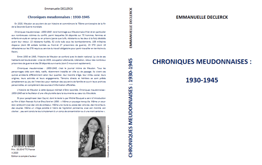 Je suis ravis de recommander à votre attention l’ouvrage de Madame Emmanuelle DECLERCK « CHRONIQUES MEUDONNAISES : 1930-1945«