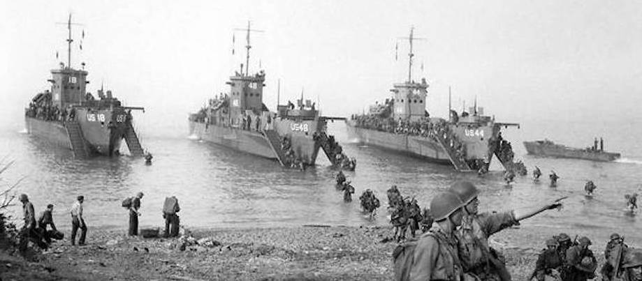 Ce jour du 6 juin 1944, 5 divisions convoyées dans près de 4 300 péniches et protégées par près de 500 bâtiments de guerre débarquent au lever du jour sur les 5 plages appelées Utah, Omaha, Gold, Juno et Sword.