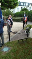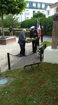 Vue d’ensemble de la manifestation et ci-dessous la dépose des 3 gerbes : Municipalité, Mémoires du Mont Valérien et Comité CdG. A noter que M. le Préfet Honoraire Christian LAMBERT, absent pour une raison majeure a fait part d’un SMS: « Avec vous dans cette grande journée de commémoration. Amitiés »
