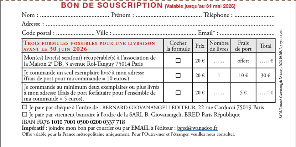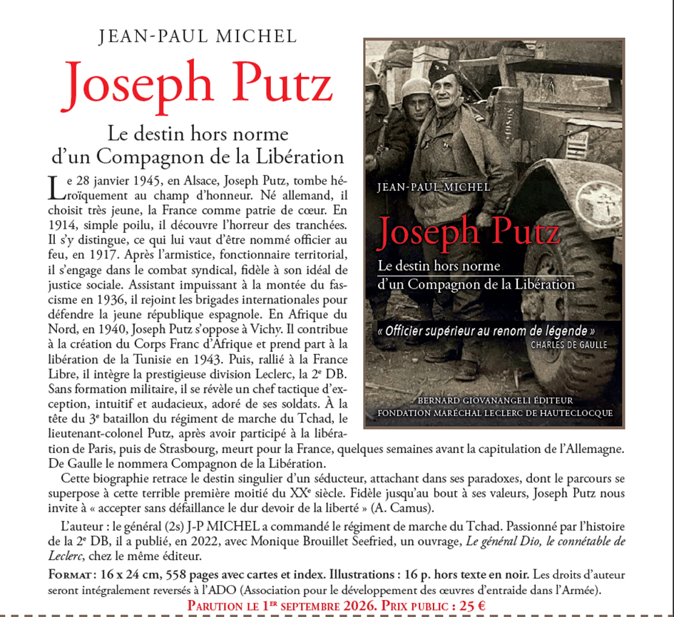 Nous vous recommandons tout particulièrement de faire l’acquisition de cet ouvrage concernant un ancien de la 2ém DB, compagnon de la Libération, mort au combat.